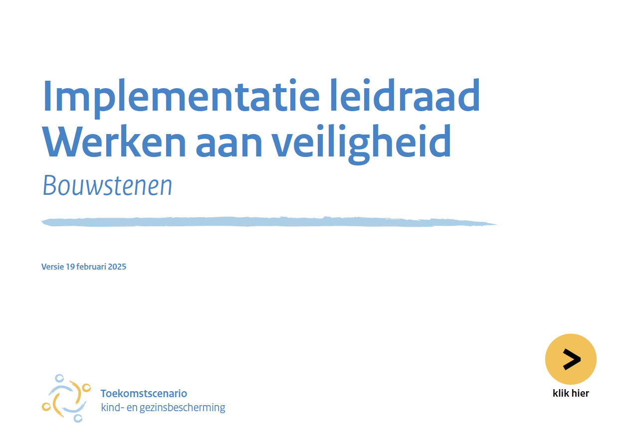 Het implementatiedocument bestaat uit 5 bouwstenen en is bedoeld voor gemeenten. Het is aan gemeenten om de leidraad te implementeren. De bouwstenen zijn opgesteld om hen daarbij te helpen. Ze geven richting aan het proces waarin gemeenten de opdracht voor de lokale teams op het gebied van de aanpak van onveiligheid in afhankelijkheidsrelaties en/of ontwikkelingsbedreiging van minderjarigen bepalen, vertalen naar keuzes voor de inrichting en uitvoering, en monitoren of in de uitvoering de gewenste resultaten worden gerealiseerd. Dat gemeenten opdrachtgever zijn voor de lokale teams wil niet zeggen dat andere partijen geen rol hebben in dit proces. Wat lokale teams in de aanpak doen, moet immers aansluiten op de rol die andere partijen hierin hebben en waar de gemeenten soms wel (Veilig Thuis, gecertificeerde instellingen) en soms niet (Raad voor de Kinderbescherming, huisartsenzorg, volwassenen-ggz bijvoorbeeld) opdrachtgever van zijn. Daarnaast moet wat de lokale teams in de aanpak doen in de toekomst aansluiten op het nog te ontwikkelen Regionaal Veiligheidsteam.